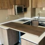 El alto estándar del diseño de este proyecto se puede ver materializado en sus terminaciones, cómo su cocina equipada con las mejores marcas del mercado, mesón de cuarzo y cocina de vitrocerámica.